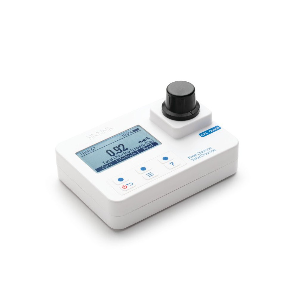 Fotómetro portátil calibrable de cloro libre, cloro total y pH, nueva serie HI97, HI97701. Fotómetro con sistema CALCHEK calibrable por el usuario, con nuevo diseño óptico para mejorar la repetitividad y rapidez de la medida.